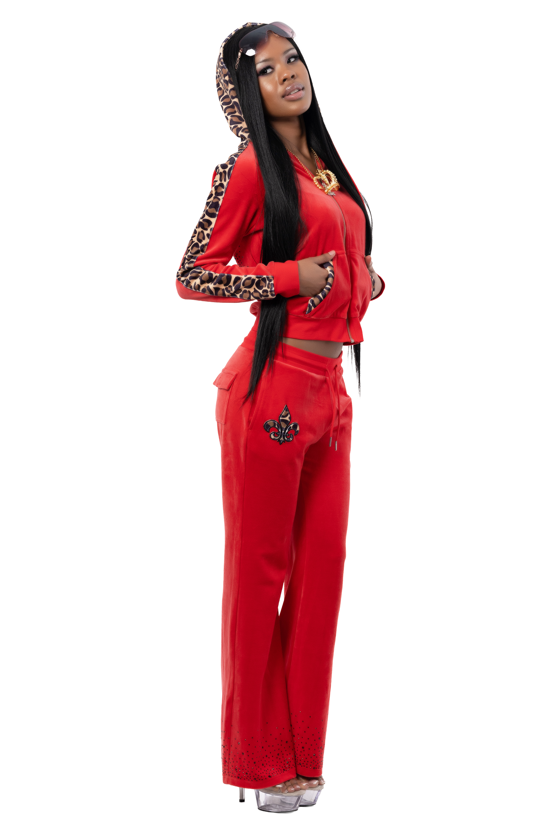 Every tracksuit in this collection is handcrafted to embody your obsession. Made to order. Fully customizable. No upcharge for sizes XXS to 5XL. Cropped or full-length jackets. Custom inseams. Special requests. Every detail is made for you. Add-on upgrades like faux fur, glitter names, and more can be added through the Tracksuit Add-Ons page. This isn’t mass produced. This is private label luxury. The fabric. The fit. The obsessed.