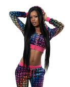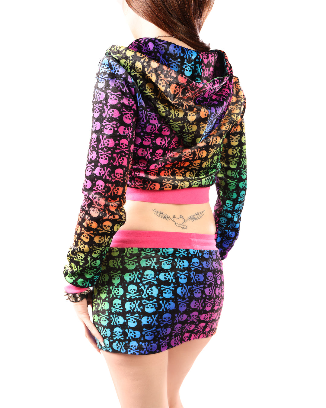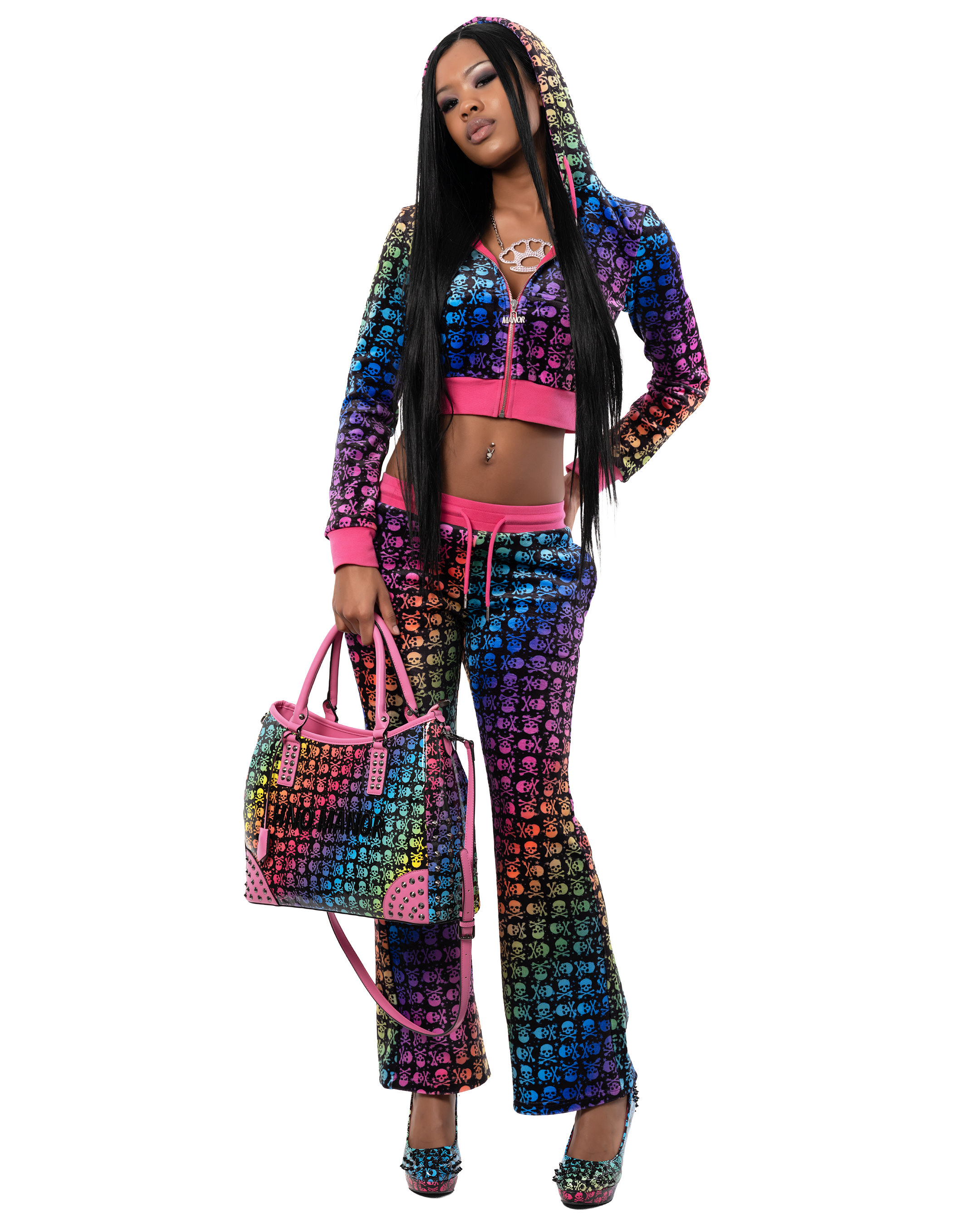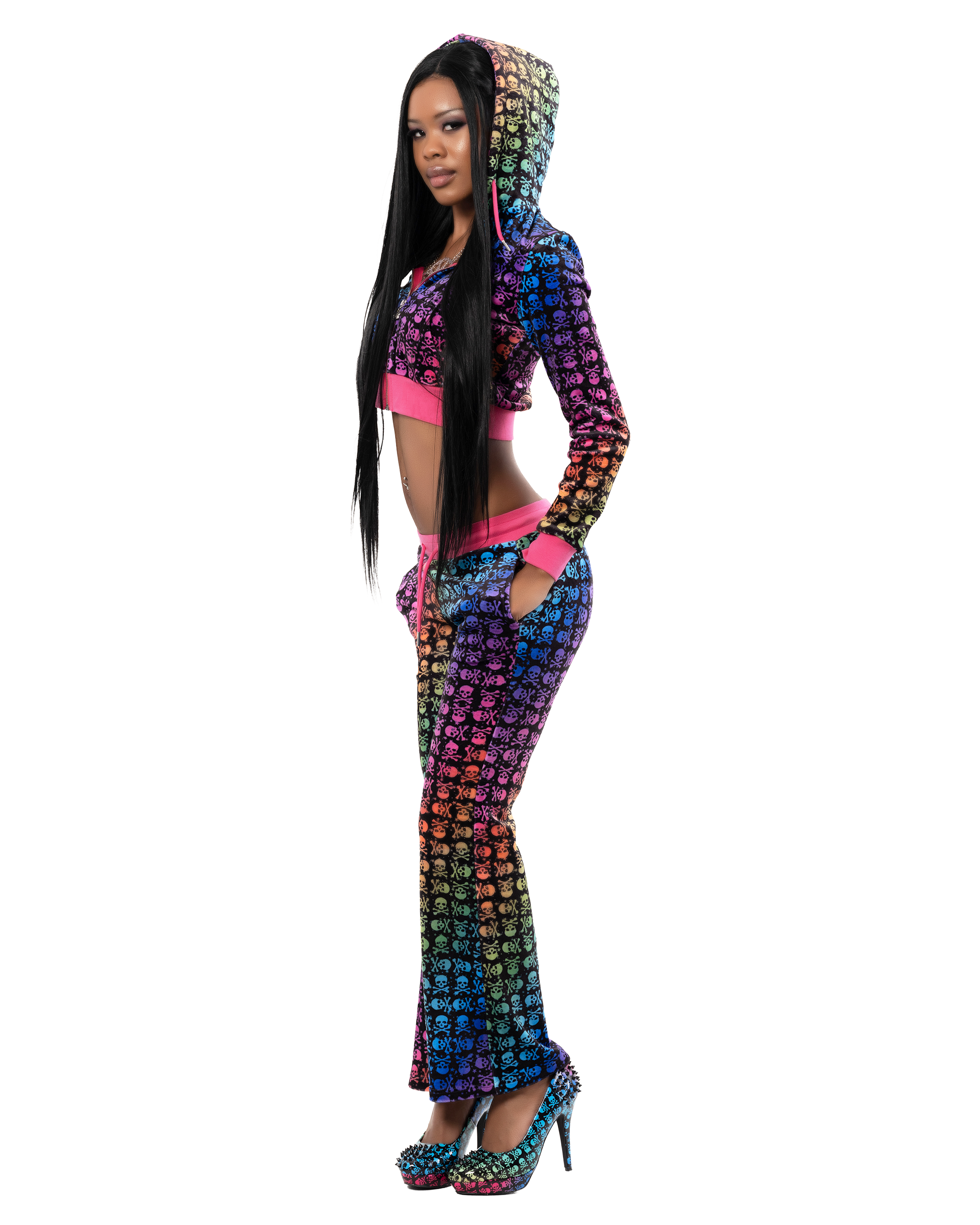 Custom print velour jacket featuring an exclusive Skull Candi design in a rainbow gradient finish.