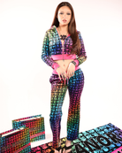 Custom print velour tracksuit featuring an exclusive Skull Candi design in a rainbow gradient finish. Crafted for a bold visual impact with a soft, comfortable feel.