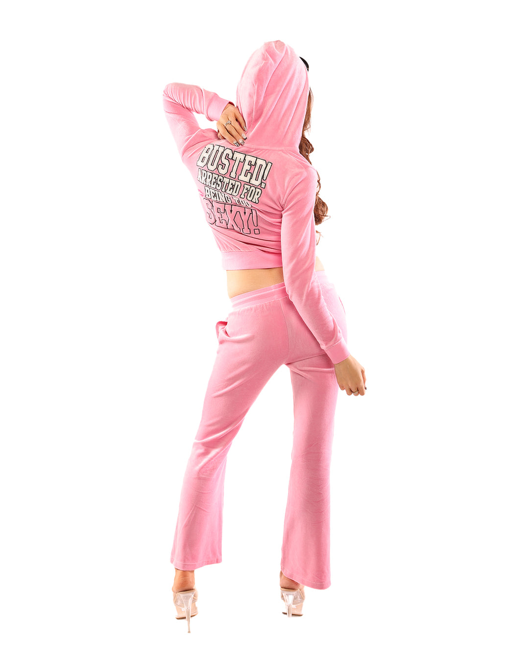 The Busted Tracksuit delivers cheeky Y2K attitude with cozy glam. Designed for Manor Girls who love to serve sass and nostalgia, this set features bold embroidered lettering, soft velour fabric, and a fit that’s both flirty and luxe. Whether you’re running errands or running the world, this set is your next obsession.