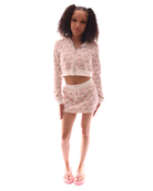 The Coquette Tracksuit is the ultimate soft girl. Flirty, comfy, and upgraded for your everyday glam. Now made with our new washable velour blend and a smooth inner lining, this set was designed for cozy queens who still serve. Featuring a dainty allover print.