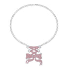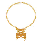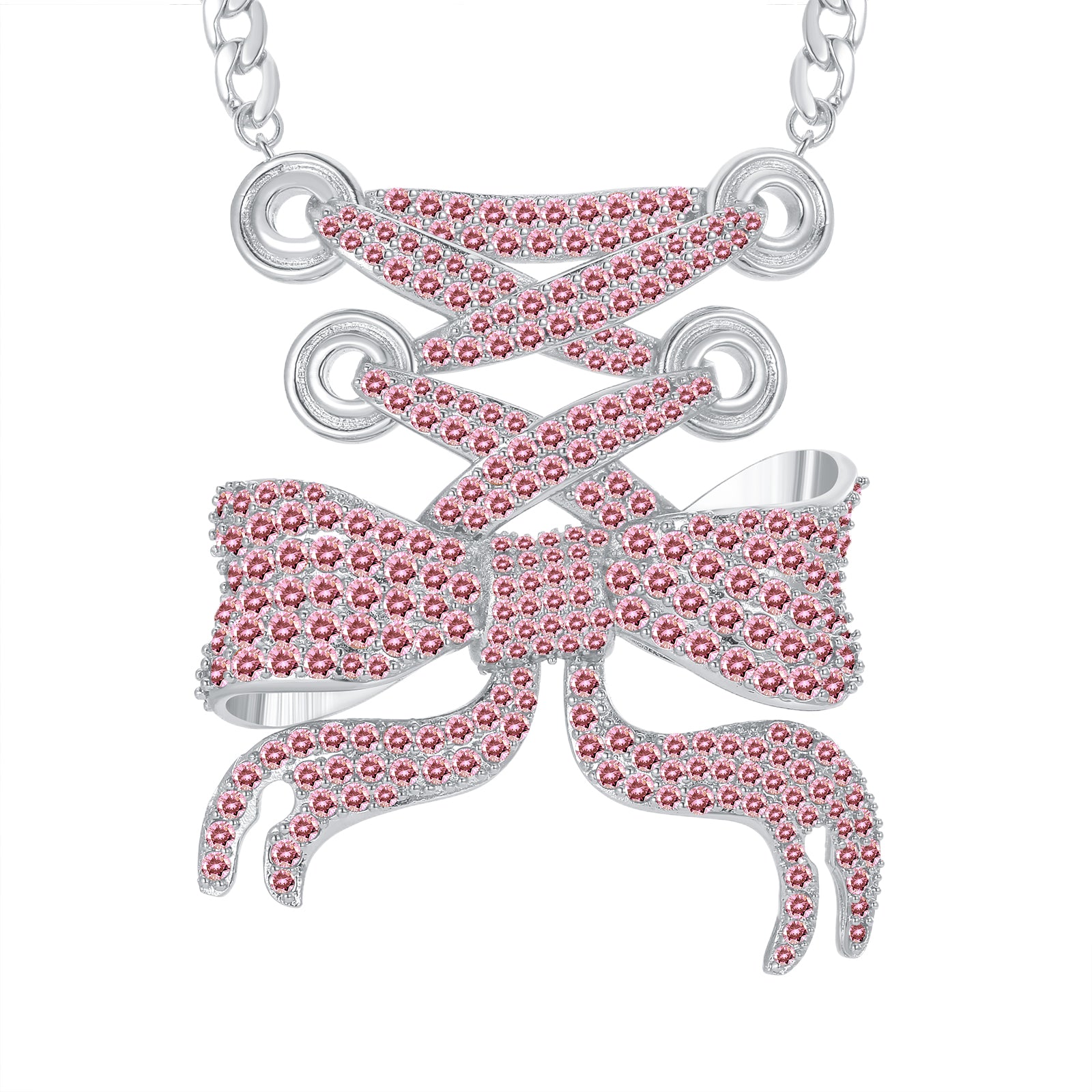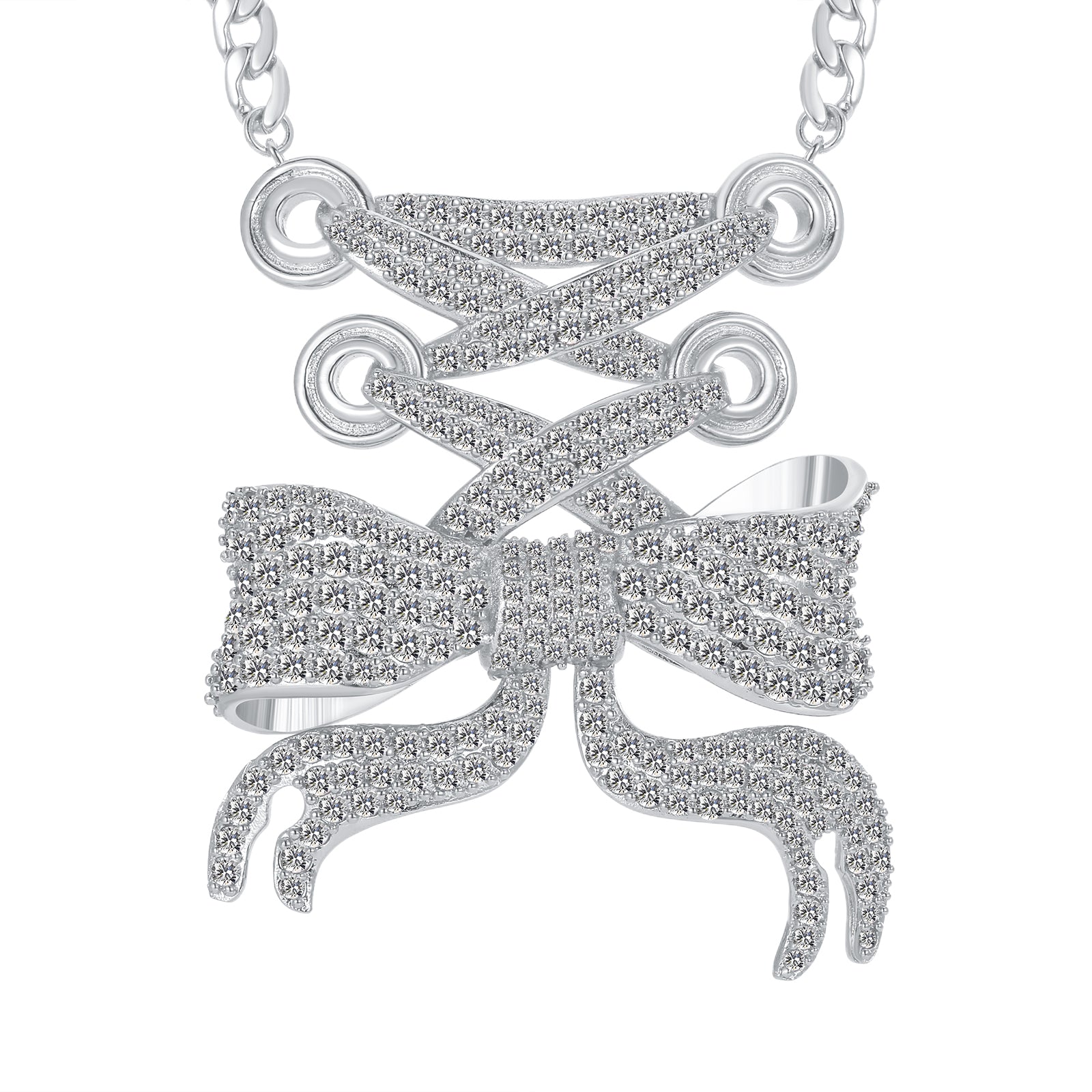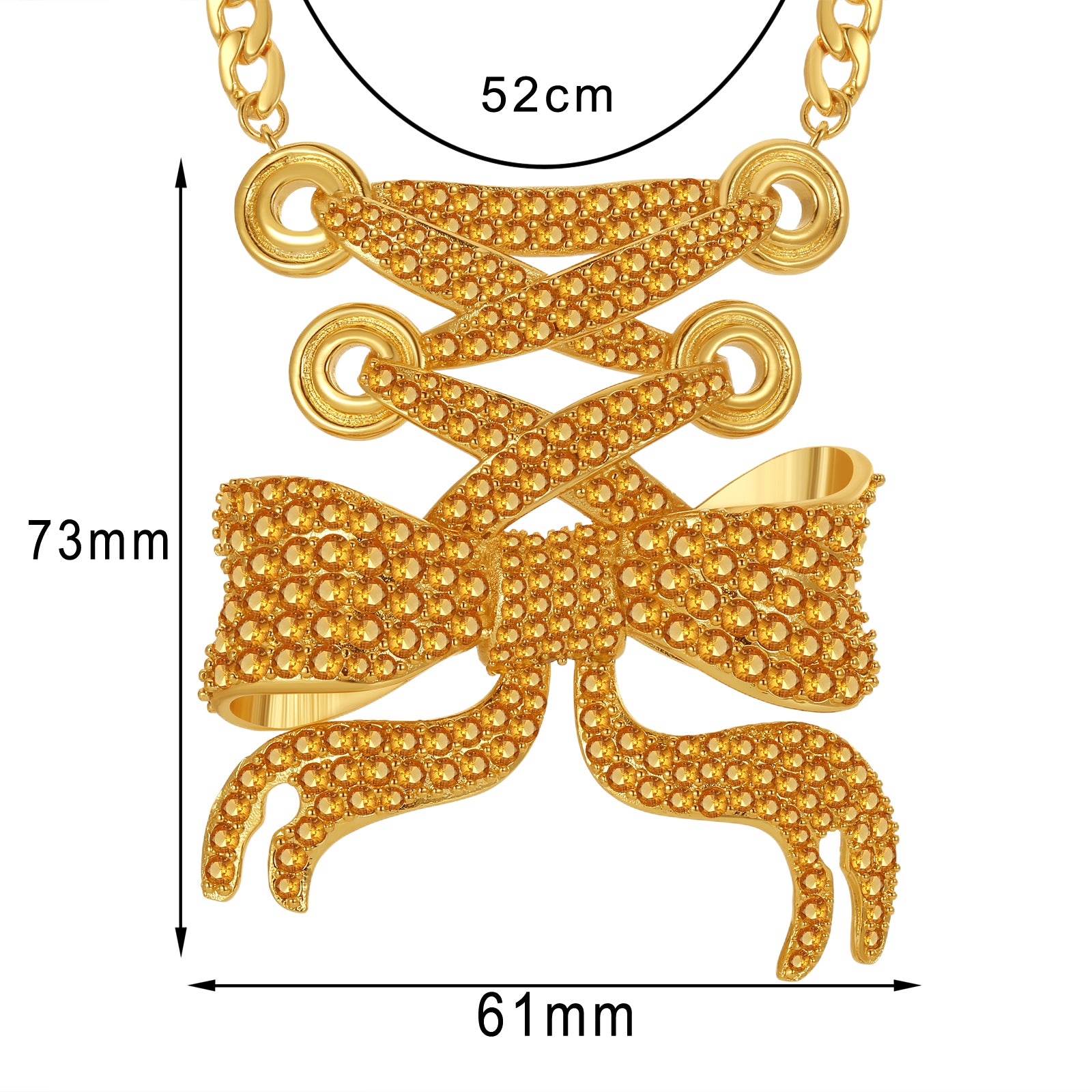 Brass corset silhouette necklace with high shine PVD platinum finish.