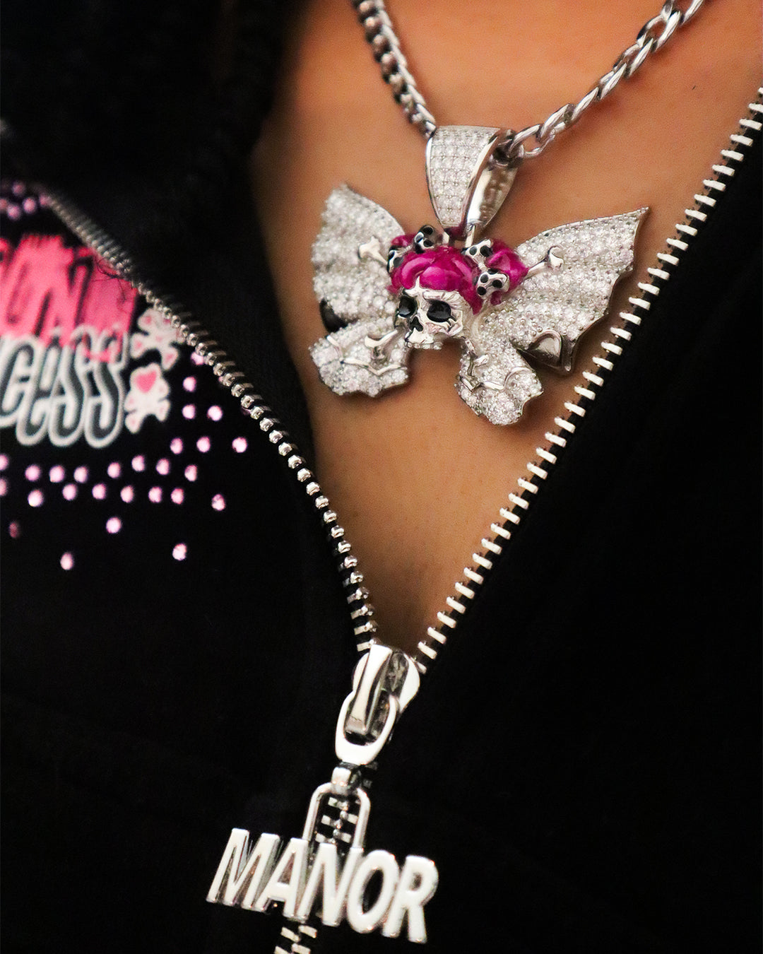 • Iced-Out Skull + Bow Pendants