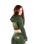 The “Me? Spoiled! Never!!” Tracksuit is your elevated off-duty statement, where comfort meets standout glam. Designed with structure in mind, this set is crafted from plush velour and finished with signature HNO details. From the shimmer of custom glitter prints to the softness of tailored cotton-blend fabric, this look is made to stand out in the day or night.
