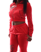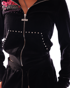 The Punk Princess Jacket. The ultimate Y2K rebel girl uniform. With bold rhinestone graphics to winged details this velour set was made for Manor Girls who slay with sparkle and attitude. Whether you're lounging or making a statement on the streets, this one’s for the glam punk divas.