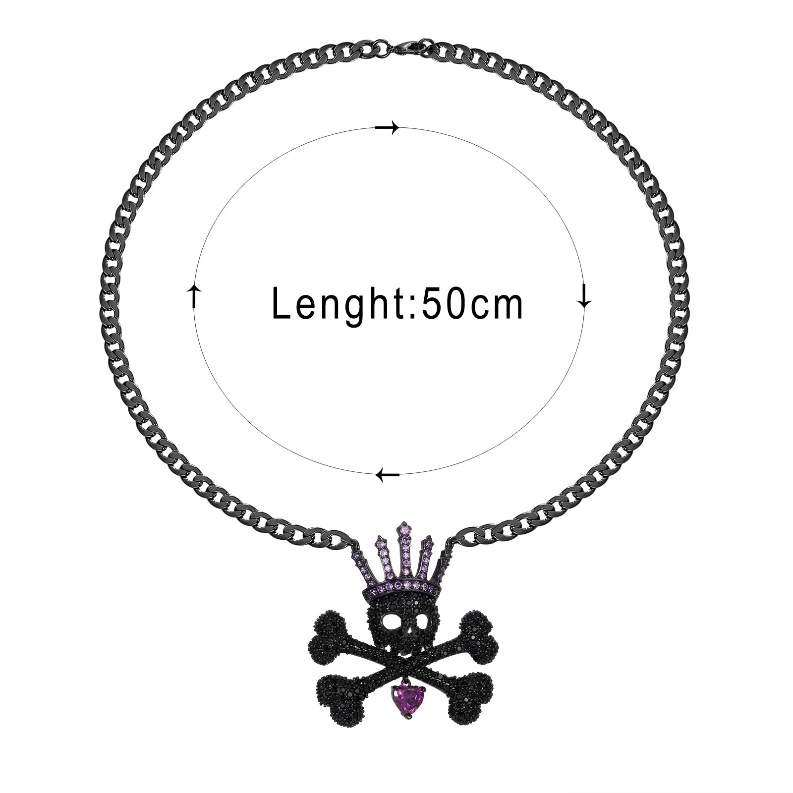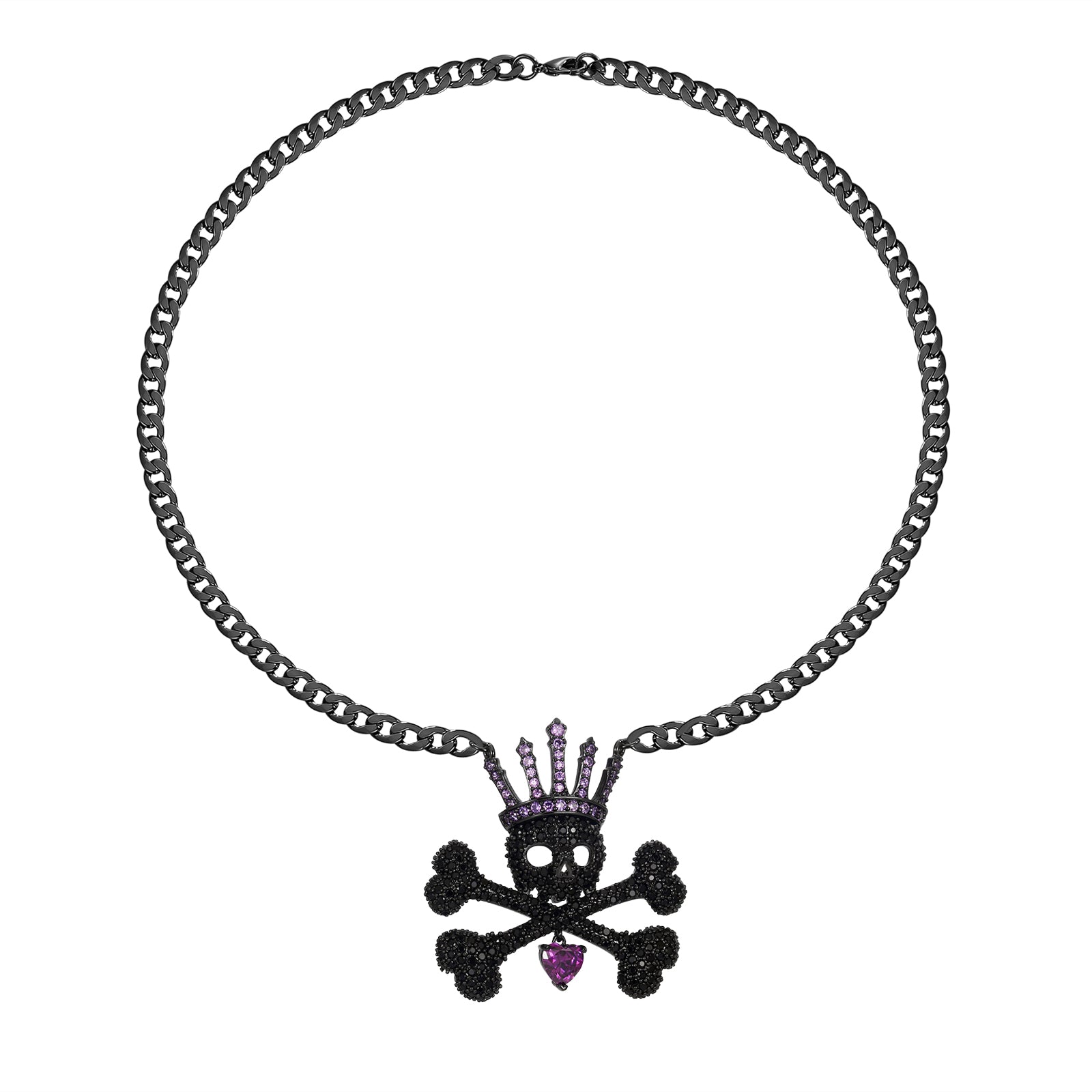 The Skull Queen Necklace combines a sculpted skull motif with a crown element, creating a distinctive balance of structure and refinement. Crafted from premium brass and finished with non-tarnish PVD platinum plating, it maintains a luminous, durable surface that exceeds the resilience of stainless steel.