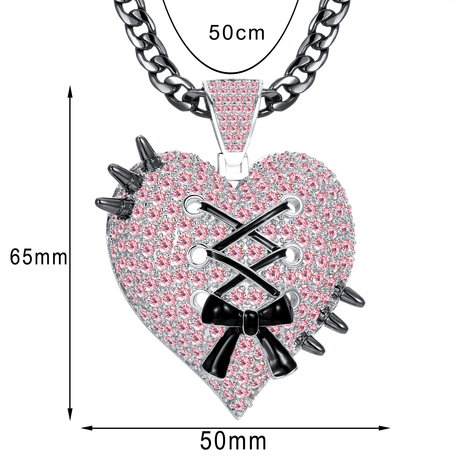 • Rhinestone Heart + Bow Pendant with Spikes